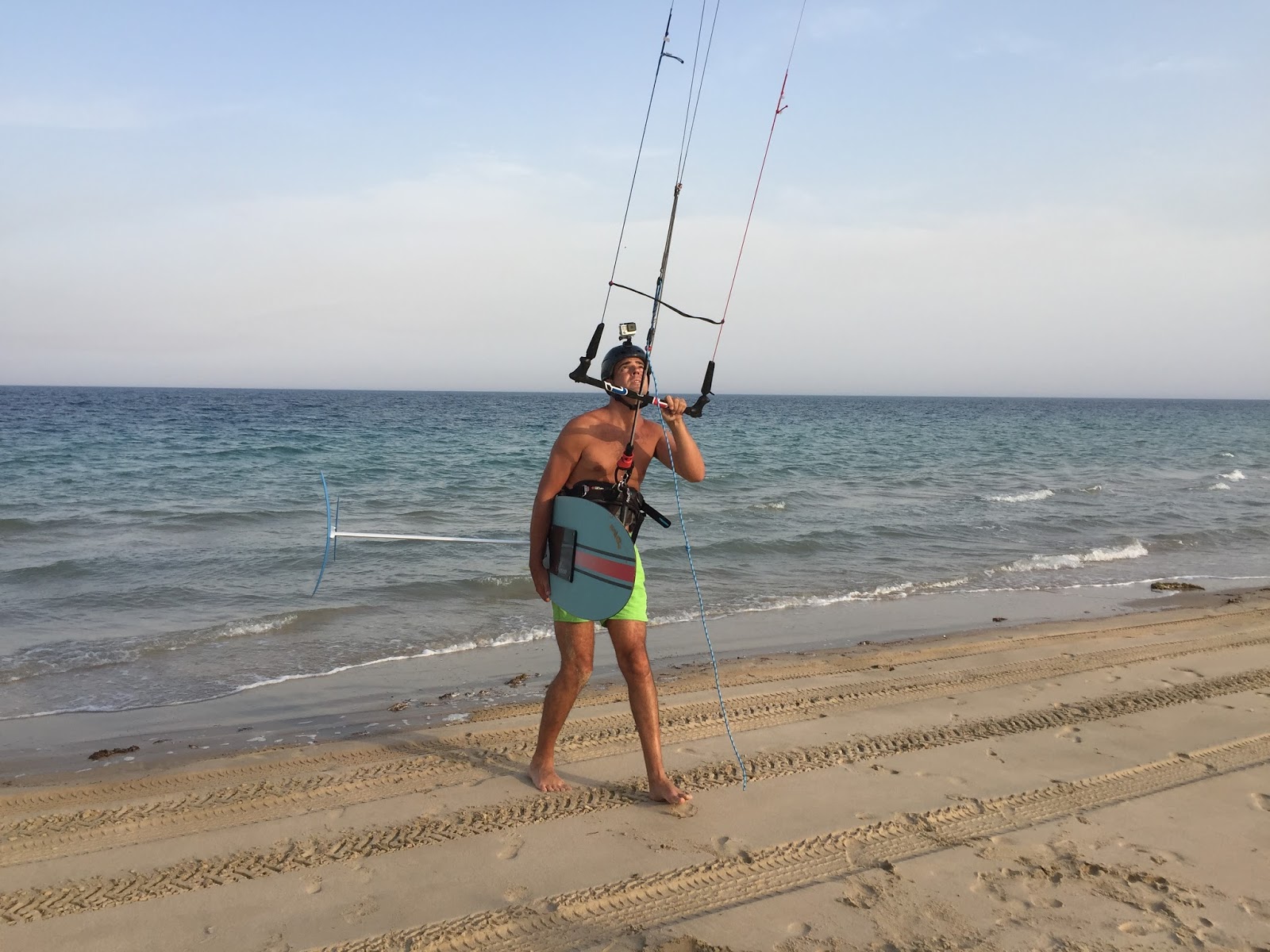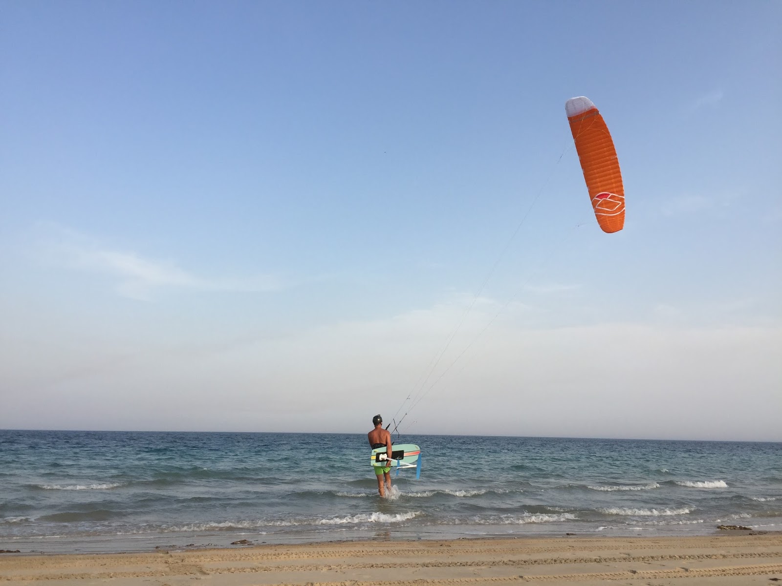 Luckily the day after on the 24th the tide and the right winds hit my home town of Wakra! Water is normally quite shallow, but tides above 1.1 m give you enough depth to ride the foil. It is a long wade through knee-deep water to get to the deep stuff but definitely worth it! My sister was over so she came along all the way for support and to record some of the action. It was tricky to get going, I have the kite on short lines for now (20m) and the wind was certainly light, I’m thinking anywhere between 5-8 knots. But with a kiteloop for initial power up I was up and running after a few attempts. Water looked glassy and so clear you could see straight through it. Amazing! Later on though the wind did drop and it was time to wade back to shore which took a while.. But so worth the effort!